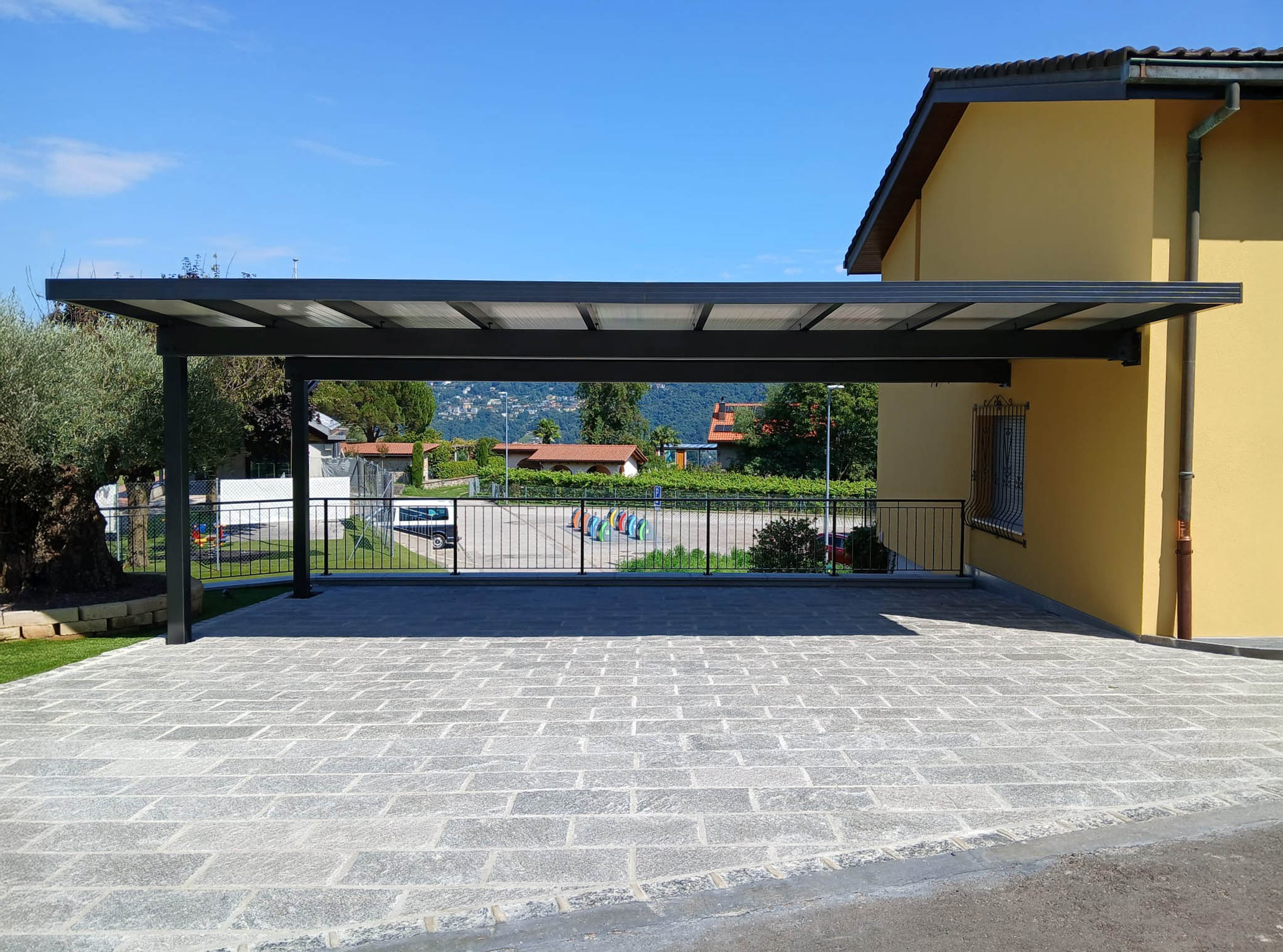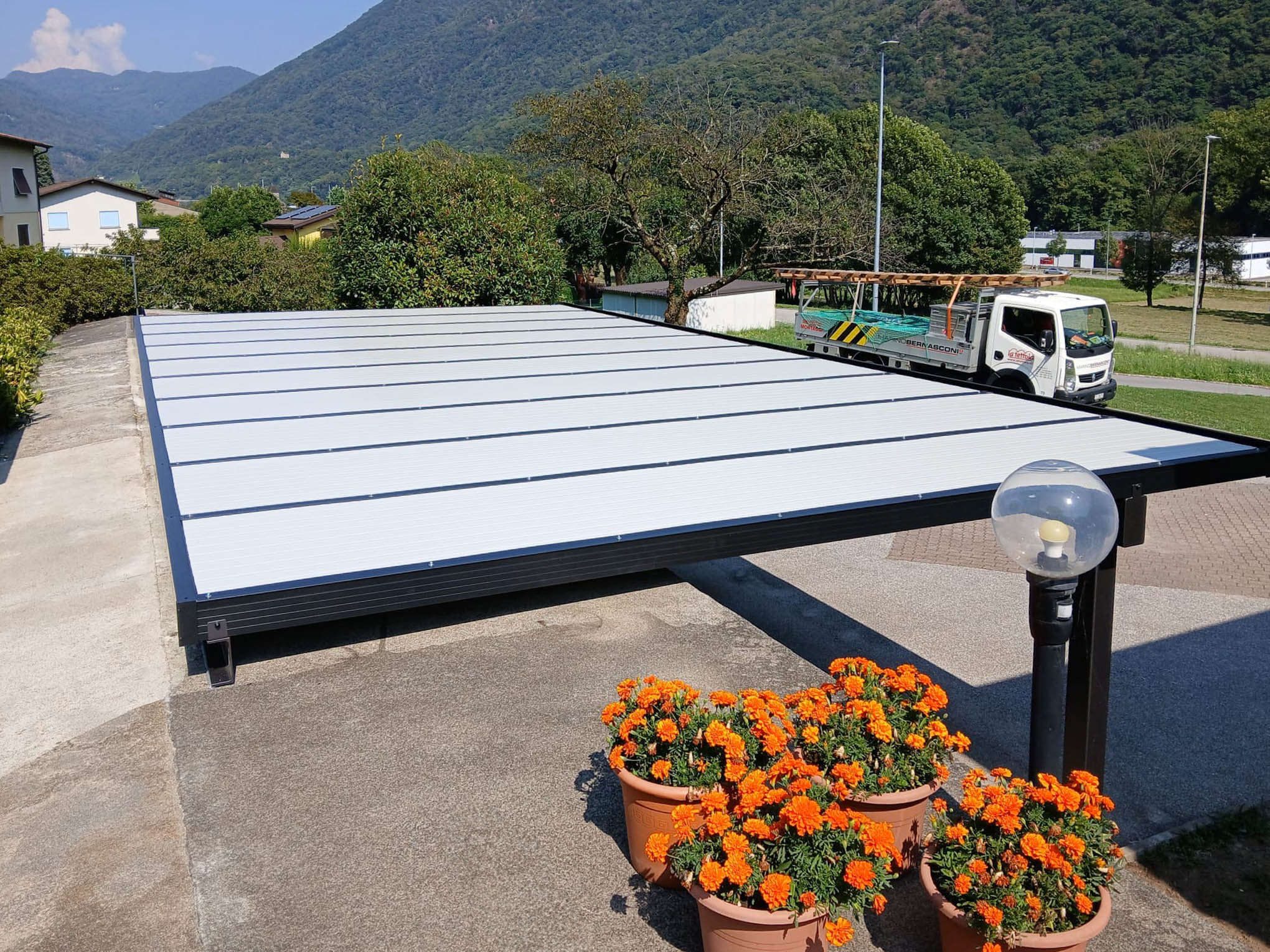 Il nuovo Carport Coibentato Marino Bernasconi SA è la soluzione ideale per chi cerca una copertura auto economica, ma di qualità, progettata per garantire protezione completa da sole, pioggia, grandine e neve.